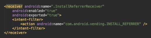 action="com.android.vending.INSTALL_REFERRER". Пример на скриншоте. Когда пользователь устанавливает приложение, вызывается метод