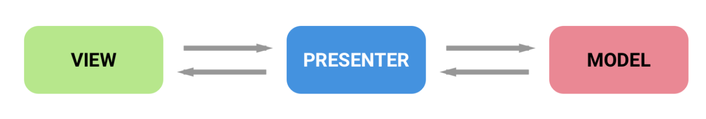 loginButton.setOnClickListener { presenter.onLoginClicked() }• Presenter – это класс, который имеет ссылки и на View, и на Model, и расположен между ними. Presenter отвечает за обработку ивентов, приходящих из View, получение данных из Model и обновление View c полученными данными.