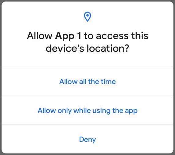 ACCESS_COARSE_LOCATION, то диалог не будет иметь опцию «Allow all the time».