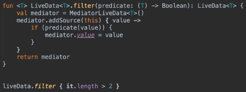 1. Объявляется extension-функция на классе LiveData, которая принимает функциональный тип как параметр.