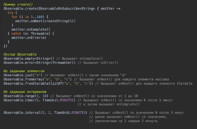 onComplete(). Эти методы используются для передачи значений вниз по RxJava цепочке.
