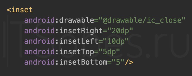 TextView.setCompoundDrawablePadding(padding: Int) можно задать padding между текстом и картинкой. Значение, которое задается этим методом, применяется ко всем Compound Drawables в TextView. Это самое неудобное ограничение при использовании Compound Drawables.inset задается оригинальный drawable-ресурс и отступы по всем сторонам.