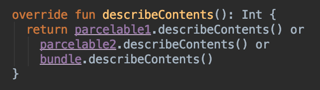 describeContents() в parcelable-поля и использовать