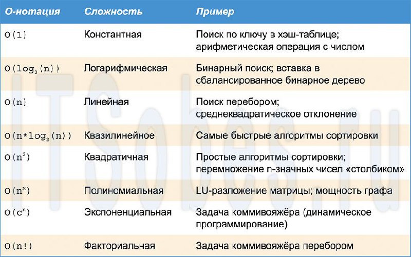 Для оценки сложности алгоритмов по времени или по памяти используется понятие "О большое". Например,