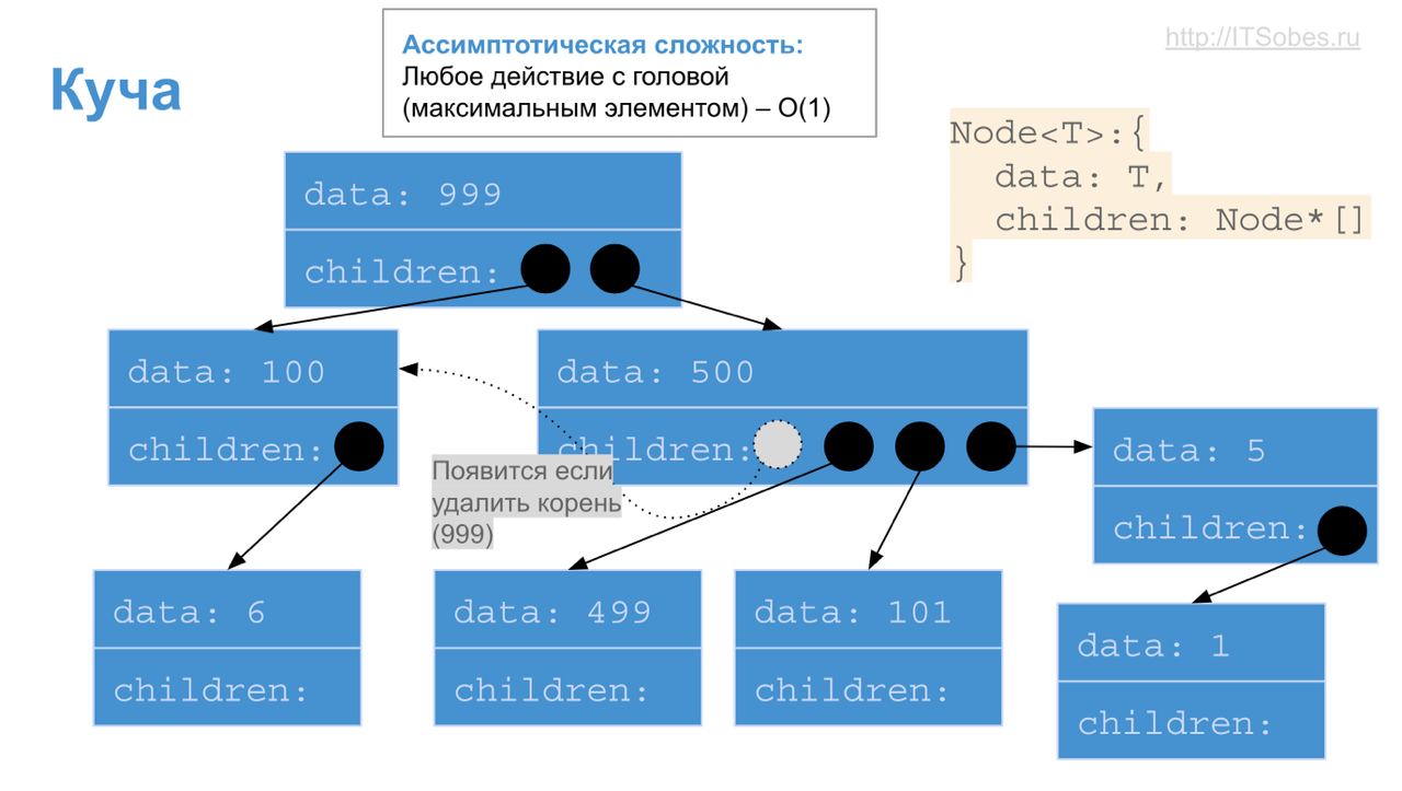 Такое построение делает кучу наилучшей реализацией структуры «очередь с приоритетом». В очереди с приоритетом в отличие от