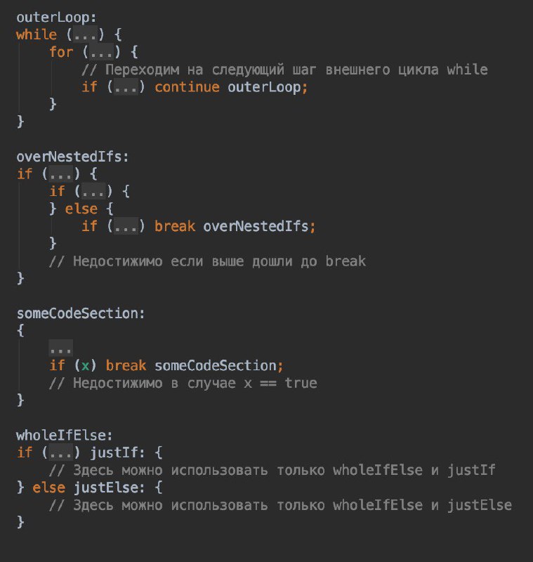 if. Метки делают возможным использование оператора break вне цикла, хотя пользы в этом обычно немного.