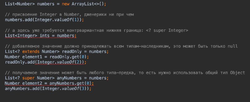 Хороший API должен уметь эффективно работать с классами-наследниками, то есть быть ко- или контравариантным где это необходимо. При этом без bounded вайлдкардов не обойтись. Чтобы запомнить, какая граница нужна в каких случаях, Joshua Bloch предложил мнемонику