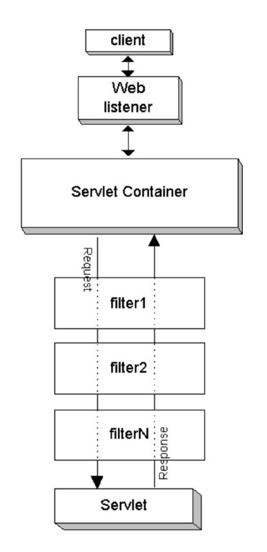 javax.servlet.Filter выстраиваются в цепочку, через которую проходит запрос по пути в сервлет, и ответ на него по пути обратно к пользователю.