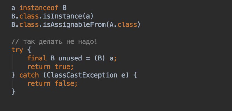 В Java доступны три способа проверки совместимости типов. Функционально они ничем не отличаются, применяются для разных наборов аргументов. В порядке убывания