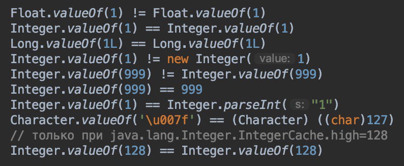 В конкретно этом примере скрыт еще один подвох: объект класса-обертки сравнивается с примитивом. Это приводит к